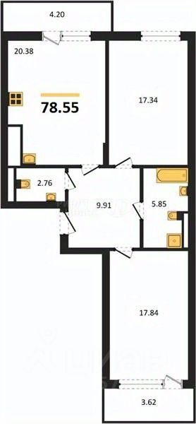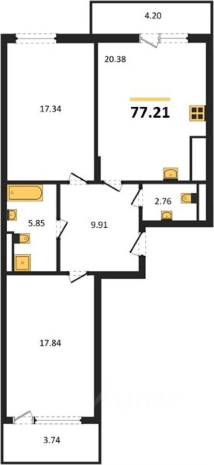 Квартира: 2 к 79,10 кв.м., 1 этаж в комплексе Аэро, 1 очередь, корп.C, сдача: 3кв. , этажей: 7, адрес Малое Исаково п., Портовый 2-й пер., д. 12, Застройщик: ГК Расцвет.