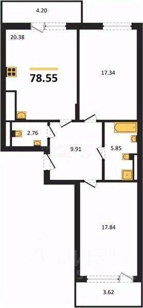 Квартира: 3 к 86,20 кв.м., 1 этаж в комплексе Аэро, 1 очередь, корп.C, сдача: 3кв. , этажей: 7, адрес Малое Исаково п., Первая ул., д. 1 корп 3, Застройщик: ГК Расцвет.