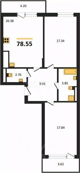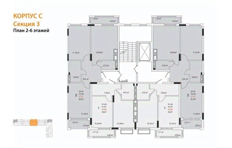 Квартира: 2 к 78,10 кв.м., 2 этаж в комплексе Аэро, 1 очередь, корп.C, сдача: 3кв. , этажей: 7, адрес Малое Исаково п., Первая ул., д. 1 корп 3, Застройщик: ГК Расцвет.
