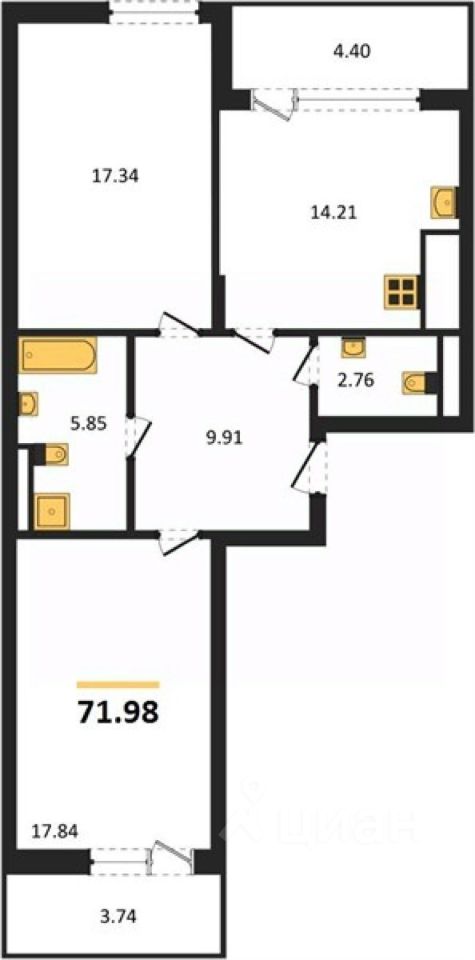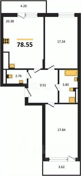 Квартира: 2 к 73,00 кв.м., 3 этаж в комплексе Аэро, 1 очередь, корп.C, сдача: 3кв. , этажей: 7, адрес Малое Исаково п., Первая ул., д. 1 корп 3, Застройщик: ГК Расцвет.