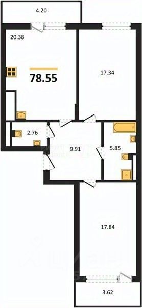 Квартира: 2 к 70,20 кв.м., 7 этаж в комплексе Аэро, 1 очередь, корп.C, сдача: 3кв. , этажей: 7, адрес Малое Исаково п., Первая ул., д. 1 корп 3, Застройщик: ГК Расцвет.