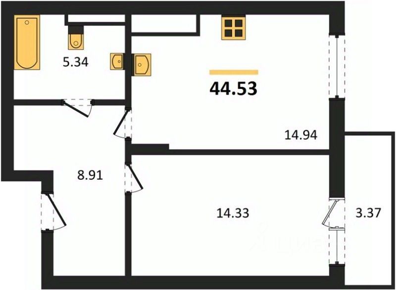 Квартира: 1 к 44,30 кв.м., 7 этаж в комплексе Аэро, 1 очередь, корп.B, сдача: 3кв. , этажей: 7, адрес Малое Исаково п., Первая ул., д. 1 корп 2, Застройщик: ГК Расцвет.