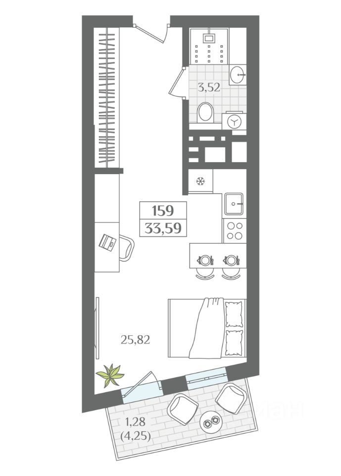 Наша уникальность — это земельный банк, состоящий из исключительных городских и курортных локаций, которые позволяют нам строить грандиозные планы для создания жилых пространств нового поколения.Продается 1-комнатная квартира 159 в ЖК Element.
