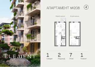 Наша уникальность — это земельный банк, состоящий из исключительных городских и курортных локаций, которые позволяют нам строить грандиозные планы для создания жилых пространств нового поколения.Продается 1-комнатная квартира 208 в ЖК Element.