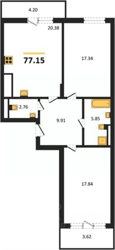 Квартира: 2 к 77,74 кв.м., 4 этаж в комплексе Аэро, 1 очередь, корп.C, сдача: 3кв. , этажей: 7, адрес Малое Исаково п., Портовый 2-й пер., д. 12, Застройщик: ГК Расцвет.