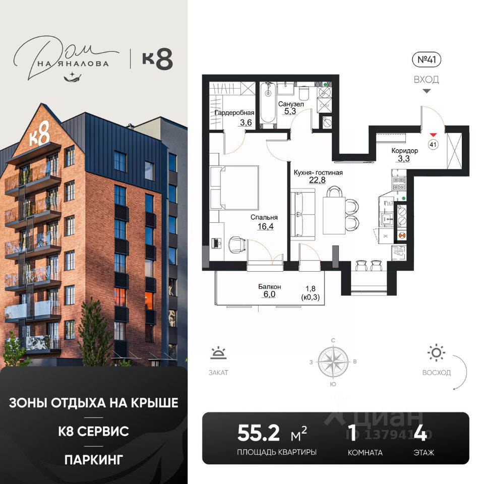 Акция "Черная пятница Х8" .Цена действует только при 100% оплате (в т.ч. при ипотеке без субсидирования) или рассрочке до 6 месяцев при первоначальном взносе от 50%. Срок действия акции: 08.11.25-07.12.25. в данный период необходимо произвести оплату, не является публичной офертой, предложение ограничено. "Дом на Яналова" это не просто недвижимость, а инвестиция в комфортную и безопасную жизнь в престижном районе города с отличной транспортной доступностью и развитой инфраструктурой. ОСНОВНЫЕ ПАРАМЕТРЫ • Клубный дом (84 квартиры) • Монолитно-каркасная технология строительства • Подземный паркинг на 48 машино-мест • И еще 16 машино-мест во дворе ИНЖЕНЕРНЫЕ РЕШЕНИЯ: • Звукоизоляция до 55 дБ (как в 5-звездочных отелях) • Индивидуальное кондиционирование • Дополнительная фильтрация воды • Система ионизации воздуха ЛОКАЦИЯ: • Престижный район города • 35 минут до моря на автомобиле • Развитая инфраструктура • Зеленый двор КОМФОРТНЫЕ РЕШЕНИЯ • Дизайнерская отделка холлов и лестничных маршей • Отделка квартир White Box • Поддержание микроклимата • Бесшумные лифты • Эксплуатируемая кровля с зонами отдыха • Собственная сервисная компания БЕЗОПАСНОСТЬ: • Охраняемая территория • Закрытый двор • Умные системы доступа ООО "Специализированный застройщик "СпецСтрой" Акция не суммируется ни с какими другими акциями на сайте. Все акции, кроме "Черной пятницы", "Спец.цена на данный лот", "К8 дарит подарки" рассчитываются от базовой стоимости.