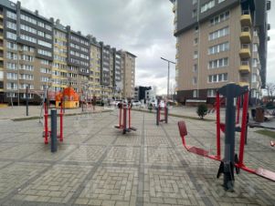 На придомовой территории имеется большая подземная и наземные парковки для личного автотранспорта. Во дворе несколько современных безопасных детских и спортивных площадок. Территория облагорожена красивыми зелеными насаждениями. Порядок в жилом комплексе поддерживается управляющей компанией.