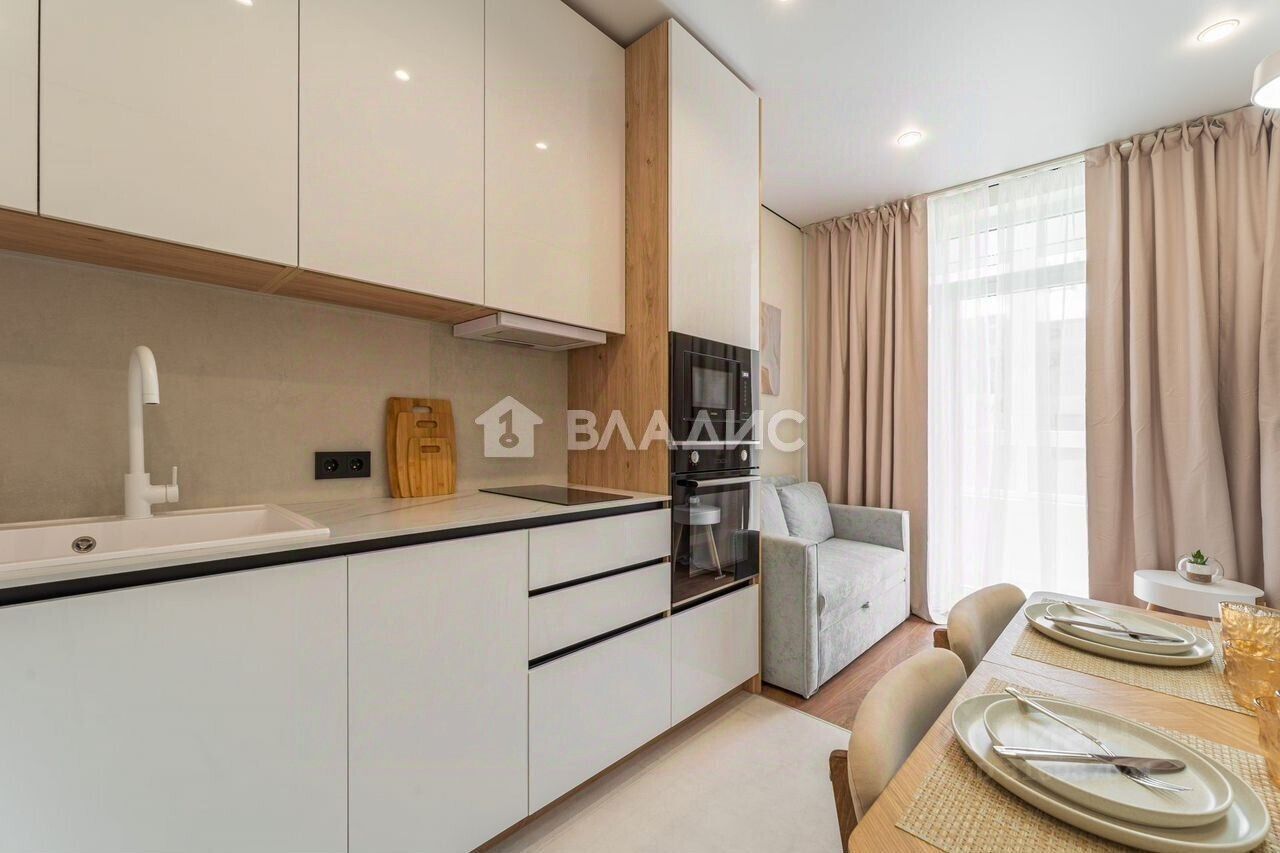 укомплектoвана встpаивaeмой бытoвой тeхникой (духовой шкаф, варочная панель, посудомойка, холодильник, вытяжка, чайник, свч, стиральная машинка)