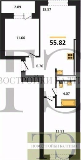 Квартира: 2 к 55,82 кв.м., 5 этаж в комплексе 11 мая, 3 очередь, корп.3.1, сдача: 2кв. , этажей: 9, адрес Калининград г., Согласия ул., , Застройщик: Модуль-Стройград.
