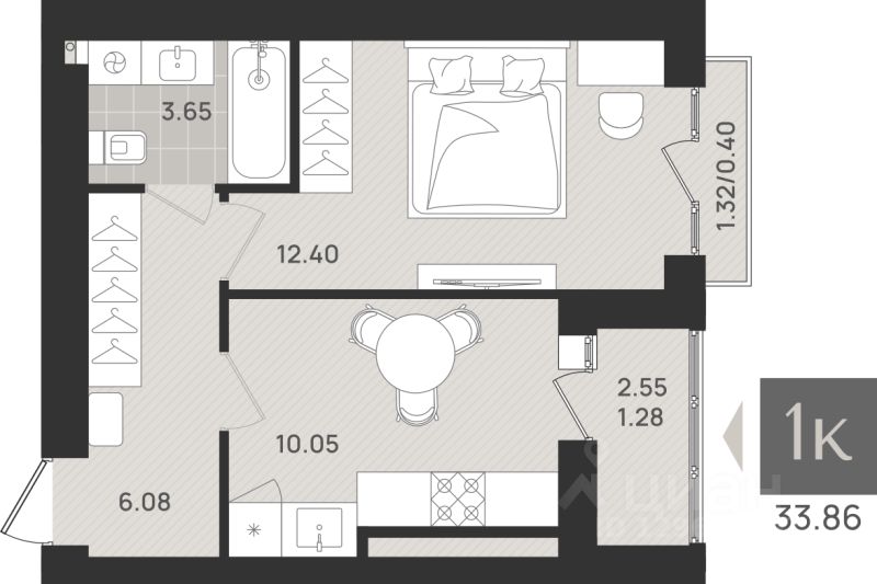 Общая площадь33,86 м²