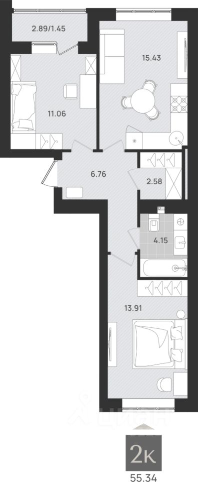 Общая площадь55,34 м²