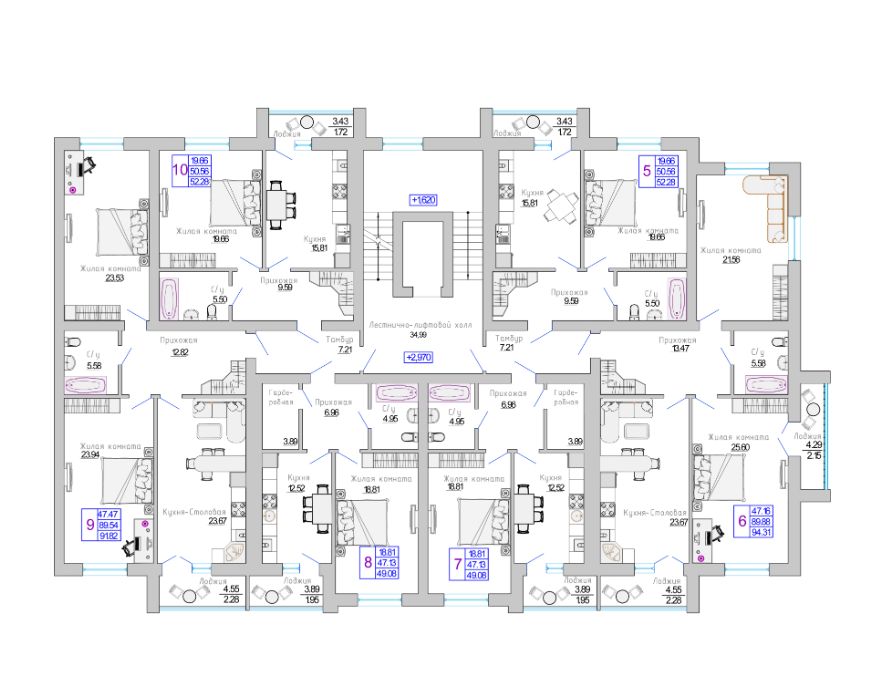 •Проектом предусмотрено размещение открытых автостоянок, наличие кладовых