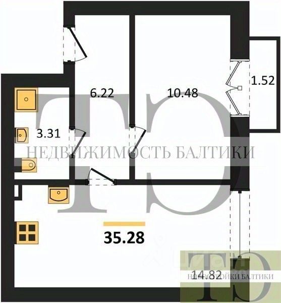 Квартира: 1 к 35,28 кв.м., 2 этаж в комплексе Резиденция, 1 очередь, корп.1, сдача: 2кв. , этажей: 5, адрес Пионерский г., Комсомольская ул., д. 19, Застройщик: Зеленый Город.