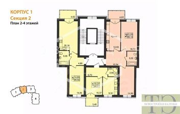 Квартира: 2 к 62,91 кв.м., 2 этаж в комплексе Резиденция, 1 очередь, корп.1, сдача: 2кв. , этажей: 5, адрес Пионерский г., Комсомольская ул., д. 19, Застройщик: Зеленый Город.