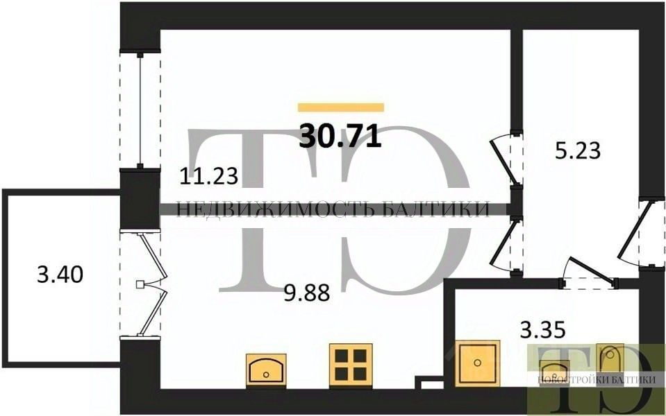 Квартира: 1 к 30,71 кв.м., 5 этаж в комплексе Резиденция, 1 очередь, корп.1, сдача: 2кв. , этажей: 5, адрес Пионерский г., Комсомольская ул., д. 19, Застройщик: Зеленый Город.