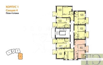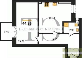 Квартира: 1 к 44,35 кв.м., 4 этаж в комплексе Резиденция, 1 очередь, корп.1, сдача: 2кв. , этажей: 5, адрес Пионерский г., Комсомольская ул., д. 19, Застройщик: Зеленый Город.