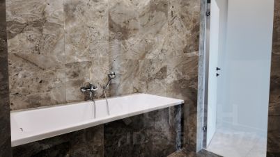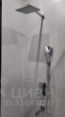 Санузлы — крупноформатный керамогранит с текстурой под металл, тёплый пол, душевые перегородки из закалённого стекла;