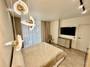 Максимально удобная планировка: две тихие спальни и просторная кухня-гостиная. Две просторные лоджии и удобная гардеробная комната. В квартире выполнен дизайнерский ремонт. Автономное отопление. Вся мебель и техника европейских брендов. Квартира готова к проживанию.
