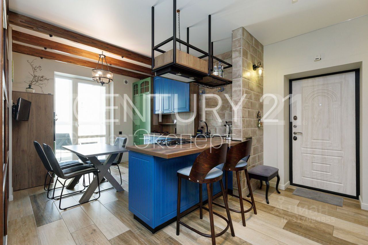 Продается стильная двухкомнатная квартира с дизайнерским ремонтом в альпийском стиле, где гармонично сочетаются керамогранит и натуральное дерево. Это место создано для комфортной жизни: квартира идеально расположена, в ней не холодно зимой и не жарко летом. Утреннее солнце мягко освещает кухню и спальню, а вечером можно наслаждаться живописным закатом в гостиной.