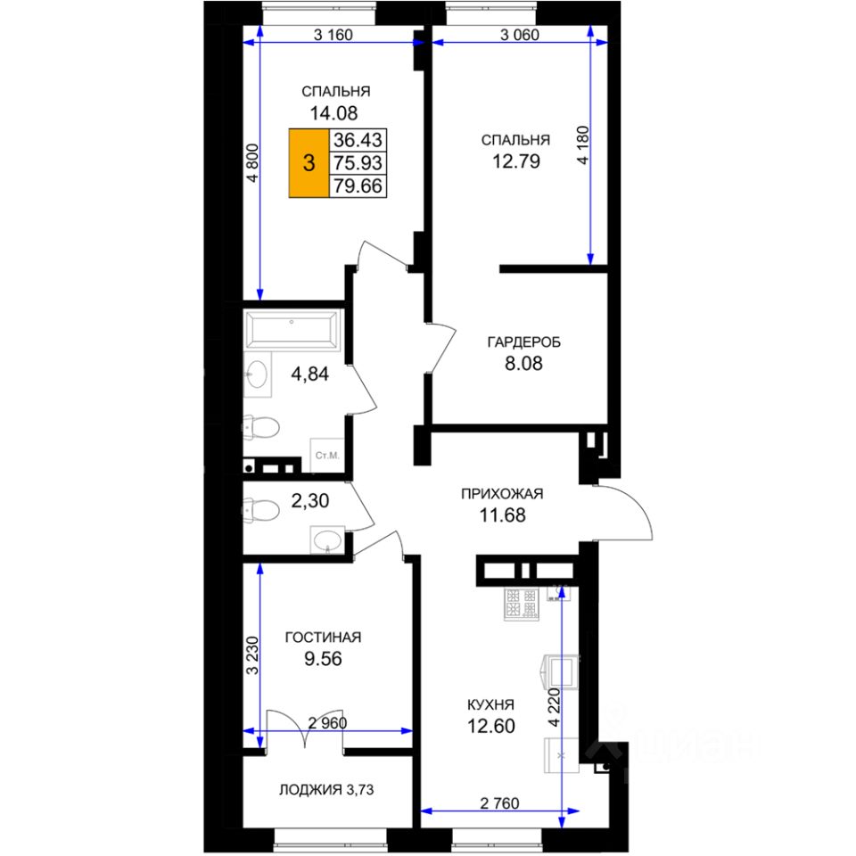 Продаётся 3-комнатная квартира в строящемся доме (Дом 4 (1 очередь)), срок сдачи: I-кв. 2026, общей площадью 79.66 кв.м., на 2 этаже. Новый жилой комплекс "Включи" от застройщика "СпецСтройКубань" расположен в г. Гурьевск в районе Гурьевского шоссе.