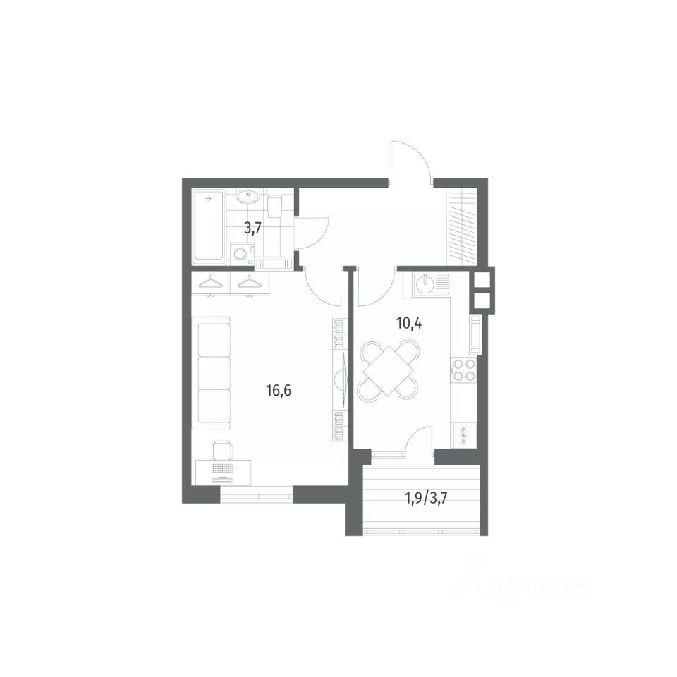 Общая площадь38,7 м²