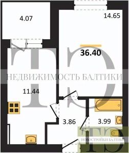 Квартира: 1 к 36,40 кв.м., 2 этаж в комплексе Тихий дом, 1 очередь, корп.3, сдача: 2кв. , этажей: 4, адрес Калининград г., Сержанта Мишина ул., д. 81, Застройщик: Интер-Инвест.