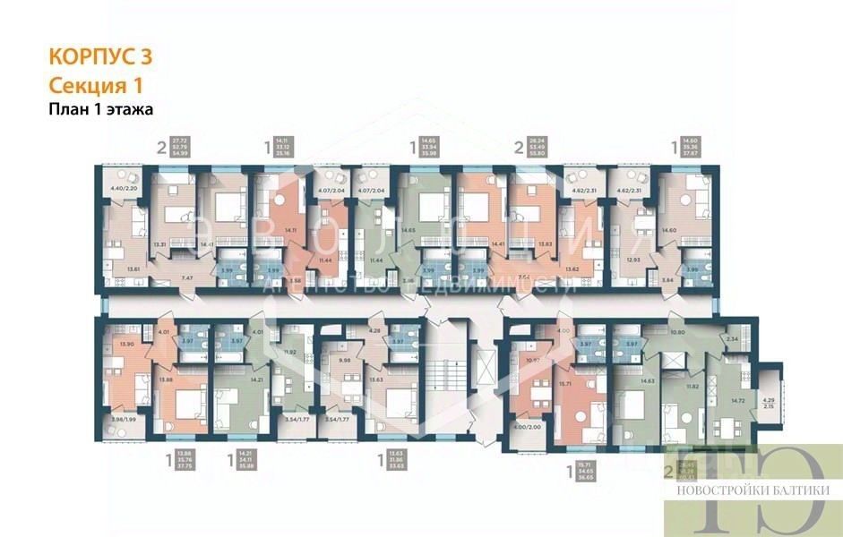 Квартира: 1 к 37,00 кв.м., 1 этаж в комплексе Тихий дом, 1 очередь, корп.3, сдача: 2кв. , этажей: 4, адрес Калининград г., Сержанта Мишина ул., д. 81, Застройщик: Интер-Инвест.