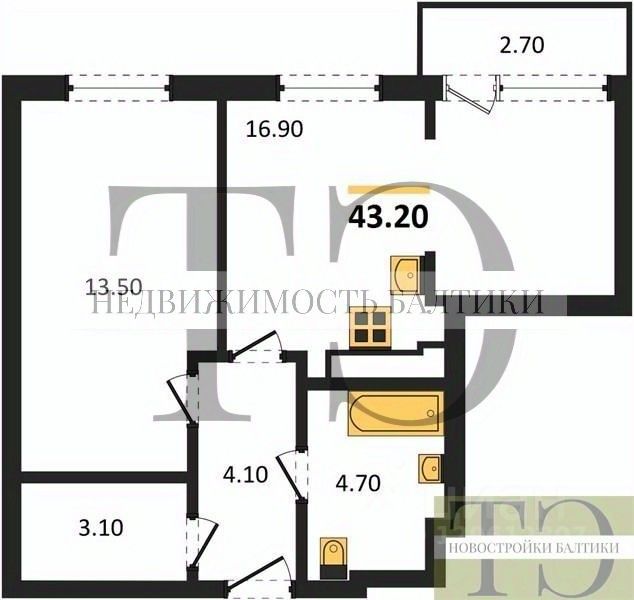 Квартира: 1 к 43,20 кв.м., 5 этаж в комплексе Симфония моря, 1 очередь, корп.1, сдача: 1кв. , этажей: 5, адрес Пионерский г., Прибрежная ул., д. 23 корп 1, Застройщик: Модуль-Стройград.