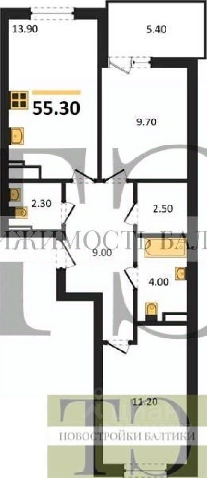 Квартира: 2 к 55,30 кв.м., 2 этаж в комплексе Симфония моря, 1 очередь, корп.1, сдача: 1кв. , этажей: 5, адрес Пионерский г., Прибрежная ул., д. 23 корп 1, Застройщик: Модуль-Стройград.