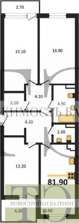 Квартира: 3 к 81,90 кв.м., 1 этаж в комплексе Симфония моря, 1 очередь, корп.1, сдача: 1кв. , этажей: 5, адрес Пионерский г., Прибрежная ул., д. 23 корп 1, Застройщик: Модуль-Стройград.