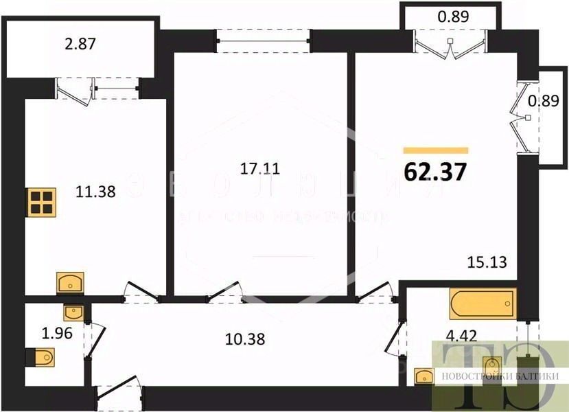 Квартира: 2 к 65,03 кв.м., 4 этаж в комплексе Суздальский 3, 3 очередь, корп.3.2, сдача: 4кв. , этажей: 9, адрес Калининград г., Суздальская ул., д. 17, Застройщик: Модуль-Стройград.