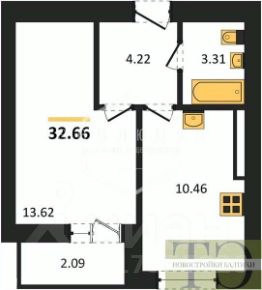 Квартира: 1 к 32,66 кв.м., 7 этаж в комплексе Суздальский 3, 3 очередь, корп.3.2, сдача: 4кв. , этажей: 9, адрес Калининград г., Суздальская ул., , Застройщик: Модуль-Стройград.