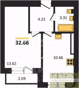 32,66 м²