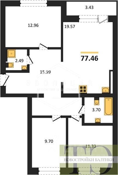 Квартира: 3 к 79,17 кв.м., 1 этаж в комплексе Суздальский 3, 3 очередь, корп.3.2, сдача: 4кв. , этажей: 9, адрес Калининград г., Суздальская ул., д. 17, Застройщик: Модуль-Стройград.