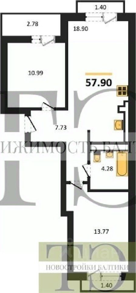 Квартира: 2 к 57,90 кв.м., 9 этаж в комплексе Подсолнухи, 4 очередь, корп.6, сдача: 4кв. , этажей: 9, адрес Калининград г., Крейсерская ул., , Застройщик: Модуль-Стройград.
