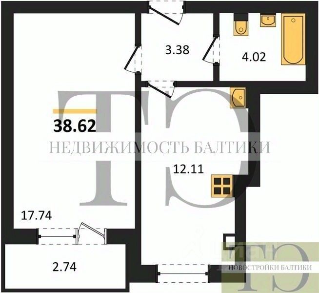 Квартира: 1 к 38,62 кв.м., 8 этаж в комплексе Подсолнухи, 4 очередь, корп.6, сдача: 4кв. , этажей: 9, адрес Калининград г., Крейсерская ул., , Застройщик: Модуль-Стройград.