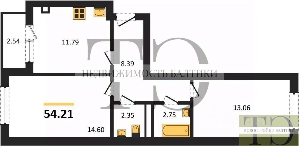 Квартира: 2 к 54,21 кв.м., 8 этаж в комплексе Подсолнухи, 4 очередь, корп.6, сдача: 4кв. , этажей: 9, адрес Калининград г., Крейсерская ул., , Застройщик: Модуль-Стройград.