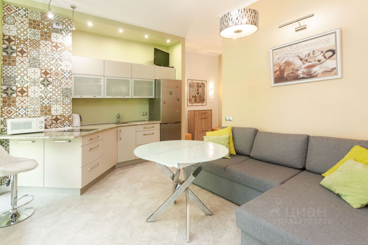 Кухня-гостиная оснащена всем необходимым для комфортного проживания, в спальне оборудована гардеробная, там же находится стиральная машина. В ванной комнате проведена система "теплый пол"