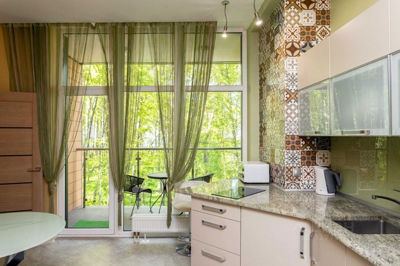 Панорамные окна и возможность выхода на балкон, как из кухни-гостиной, так и из спальни.