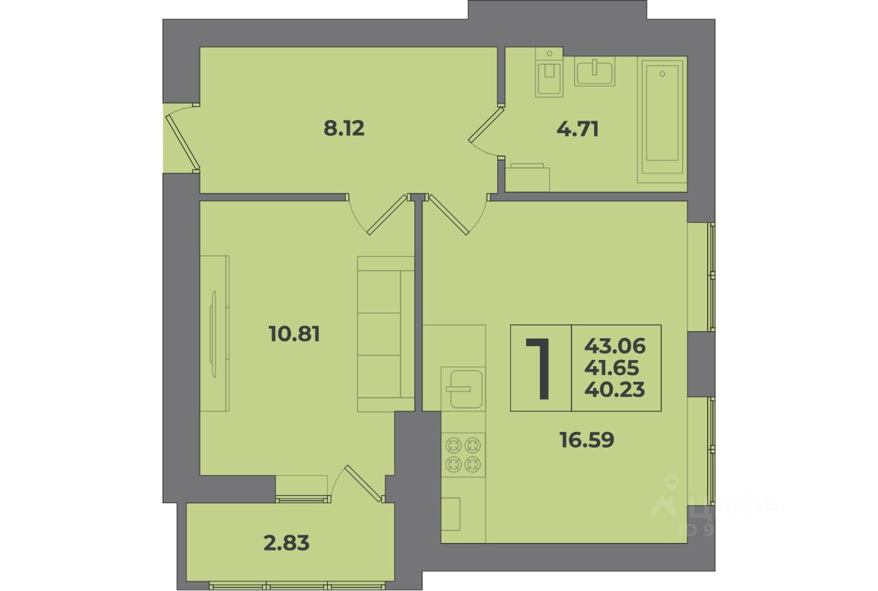 Продаётся 1-комнатная квартира в строящемся доме (Дом 9), срок сдачи: I-кв. 2026, общей площадью 43.06 кв.м., на 1 этаже. Жилой комплекс "Родина" представляет собой группу многоквартирных домов в Калининграде. В шаговой доступности от комплекса расположены детские сады, школа и поликлиника.