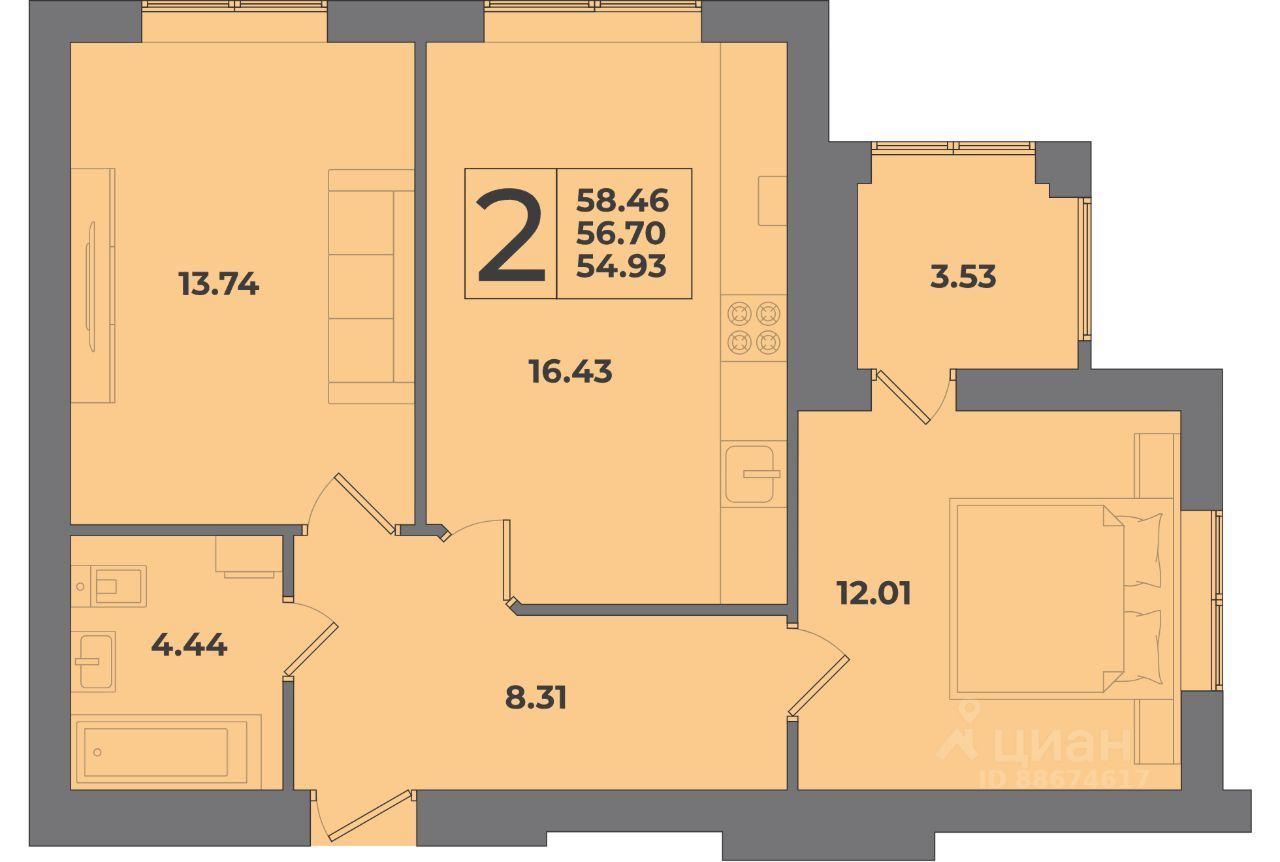 Продаётся 2-комнатная квартира в строящемся доме (Дом 9), срок сдачи: I-кв. 2026, общей площадью 58.46 кв.м., на 2 этаже. Жилой комплекс "Родина" представляет собой группу многоквартирных домов в Калининграде. В шаговой доступности от комплекса расположены детские сады, школа и поликлиника.