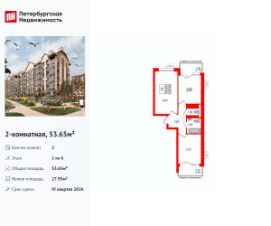 Удобная, классическая планировка, кухня 10.98 м², вместительная прихожая 6 м². Общая площадь квартиры - 53.65 м², жилая 27.95 м², высота потолка 3 м.