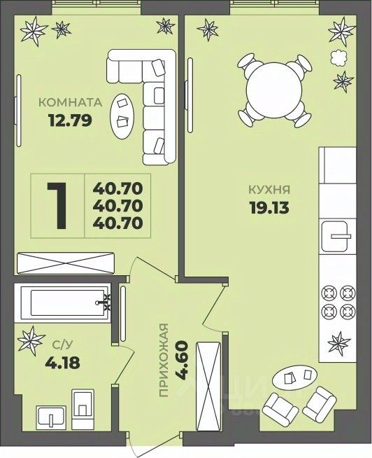 Продаётся 1-комнатная квартира в строящемся доме (Дом 2), срок сдачи: II-кв. 2027, общей площадью 40.7 кв.м., на 1 этаже. ЖК "ГРИНВУД".