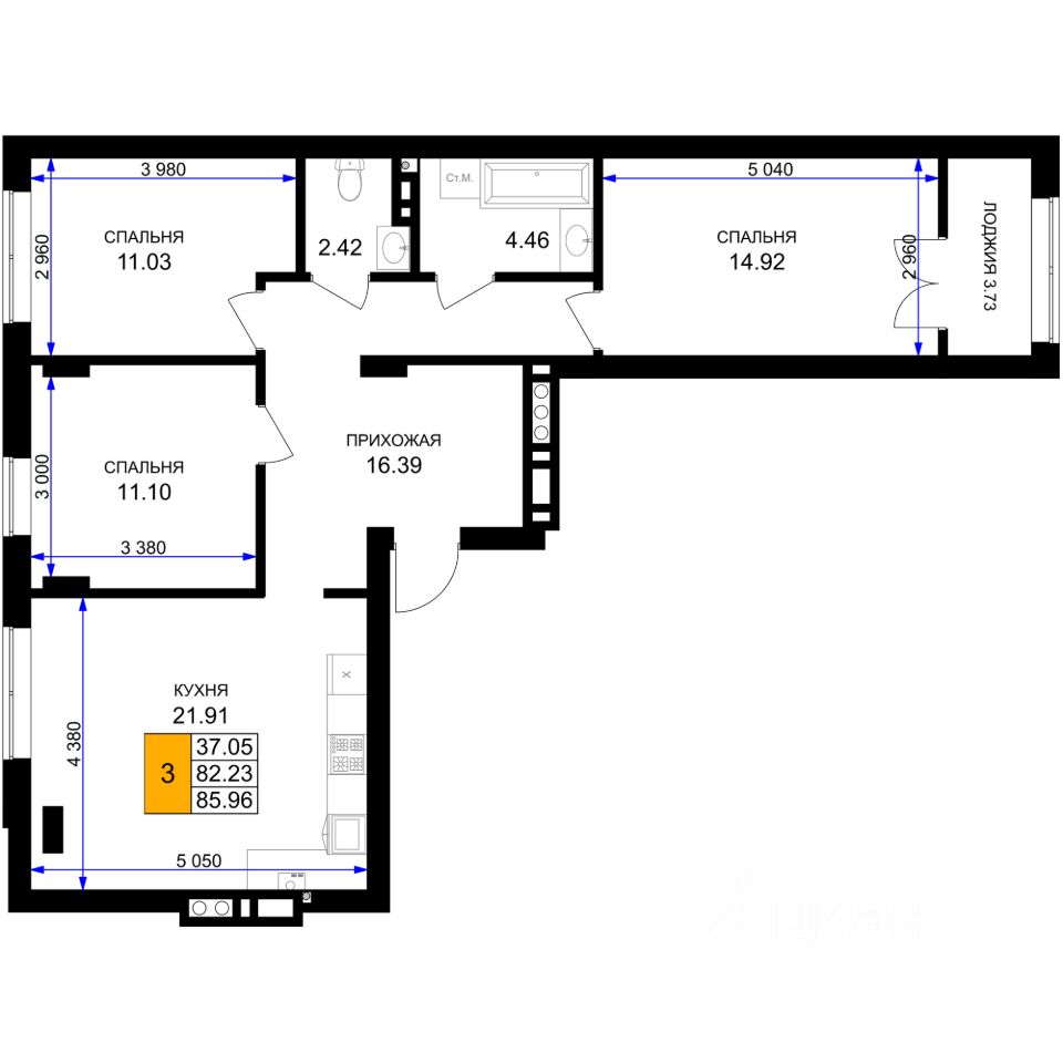 Продаётся 3-комнатная квартира в строящемся доме (Дом 7 (2 очередь)), срок сдачи: I-кв. 2027, общей площадью 85.96 кв.м., на 7 этаже. Новый жилой комплекс "Включи" от застройщика "СпецСтройКубань" расположен в г. Гурьевск в районе Гурьевского шоссе.