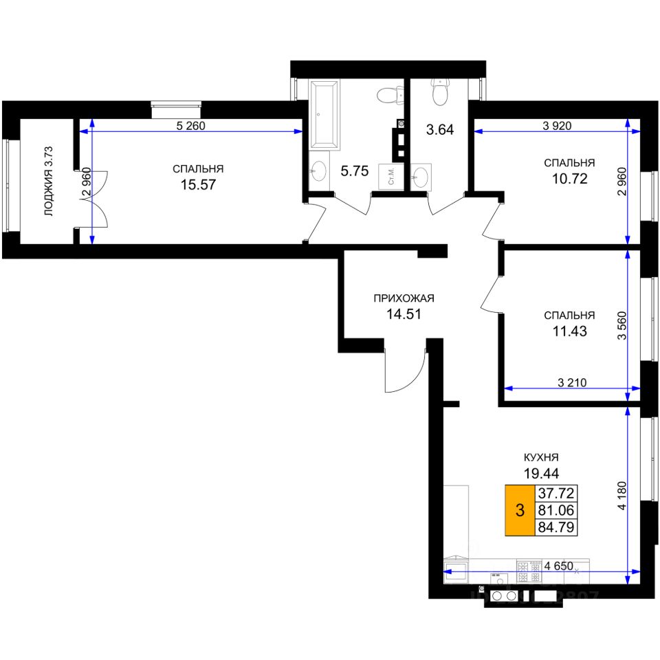 Продаётся 3-комнатная квартира в строящемся доме (Дом 7 (2 очередь)), срок сдачи: I-кв. 2027, общей площадью 84.79 кв.м., на 3 этаже. Новый жилой комплекс "Включи" от застройщика "СпецСтройКубань" расположен в г. Гурьевск в районе Гурьевского шоссе.