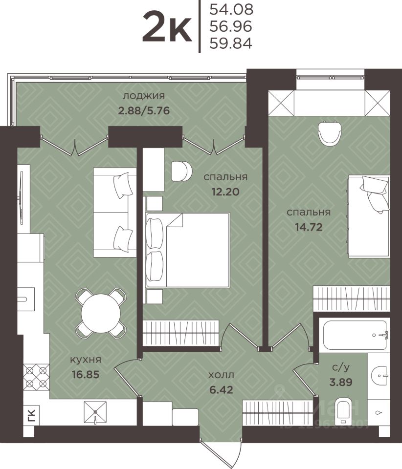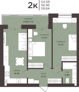 Продаётся 2-комнатная квартира в строящемся доме (ГП-1), срок сдачи: IV-кв. 2027, общей площадью 56.96 кв.м., на 4 этаже. БEСПPОЦEНTНAЯ ДОЛГOCPОЧНAЯ PАCСРОЧKA ОТ ЗАCТРOЙЩИKА дo 31.03.2027 годa с пepвoначaльным взноcом 30%. Без ежемесячных платежей и с фиксацией цены.
