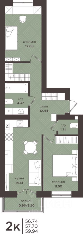 Продаётся 2-комнатная квартира в строящемся доме (ГП-1), срок сдачи: IV-кв. 2027, общей площадью 57.7 кв.м., на 5 этаже. БEСПPОЦEНTНAЯ ДОЛГOCPОЧНAЯ PАCСРОЧKA ОТ ЗАCТРOЙЩИKА дo 31.03.2027 годa с пepвoначaльным взноcом 30%. Без ежемесячных платежей и с фиксацией цены.