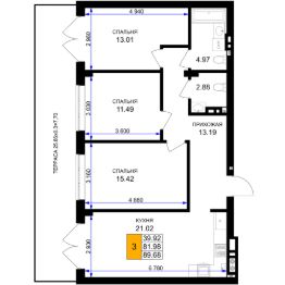 Продаётся 3-комнатная квартира в строящемся доме (Дом 9 (2 очередь)), срок сдачи: III-кв. 2027, общей площадью 89.68 кв.м., на 1 этаже. Новый жилой комплекс "Включи" от застройщика "СпецСтройКубань" расположен в г. Гурьевск в районе Гурьевского шоссе.