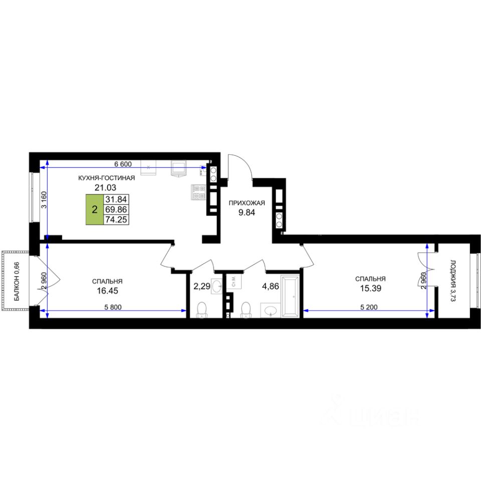 Продаётся 2-комнатная квартира в строящемся доме (Дом 1 (1 очередь)), срок сдачи: IV-кв. 2025, общей площадью 74.25 кв.м., на 7 этаже. Новый жилой комплекс "Включи" от застройщика "СпецСтройКубань" расположен в г. Гурьевск в районе Гурьевского шоссе.