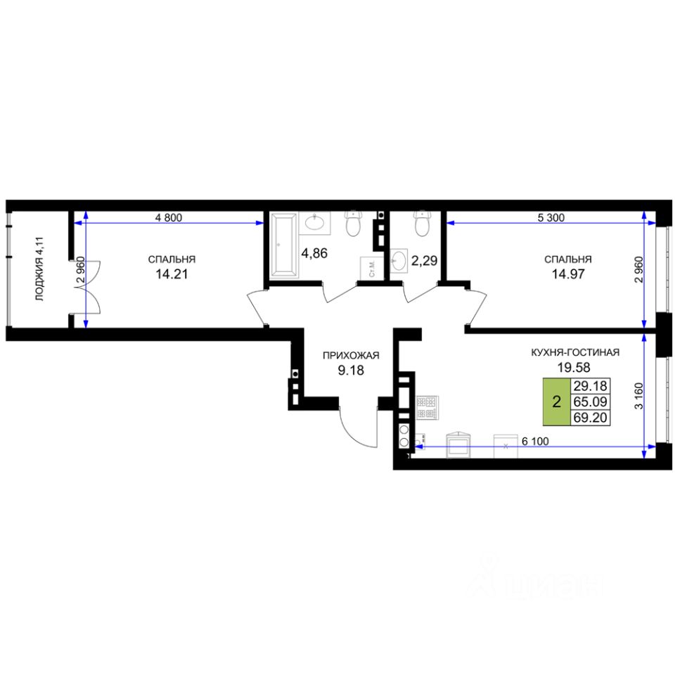 Продаётся 2-комнатная квартира в строящемся доме (Дом 1 (1 очередь)), срок сдачи: IV-кв. 2025, общей площадью 69.2 кв.м., на 6 этаже. Новый жилой комплекс "Включи" от застройщика "СпецСтройКубань" расположен в г. Гурьевск в районе Гурьевского шоссе.
